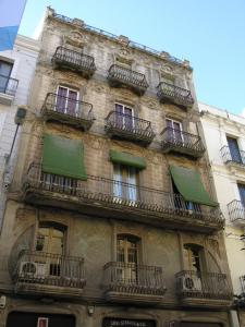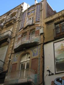 Неоклассический дом на углу площади генерала Прима и улицы Raval de Santa Anna хоть не отмечен в путеводителях, но порадовал изящными наличниками и ажурными модернистскими балкончиками. На нижнем этаже здания находится аптека Miranda (адрес Raval de Santa Anna, 2). Вид фасада со стороны площади Прима (начало улицы Carrer de Llovera):