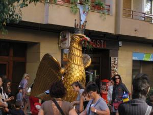 В яркой костюмированной процессии, которая с танцами и музыкой движется по обсаженному платанами бульвару Passeig Misericòrdia (см. нашу карту Реуса), участвуют следующие сказочные и исторические персонажи и животные: виверна, дракон, василиск, лев, орёл, большеголовые, мулица и гиганты, гигант Каррасклет.