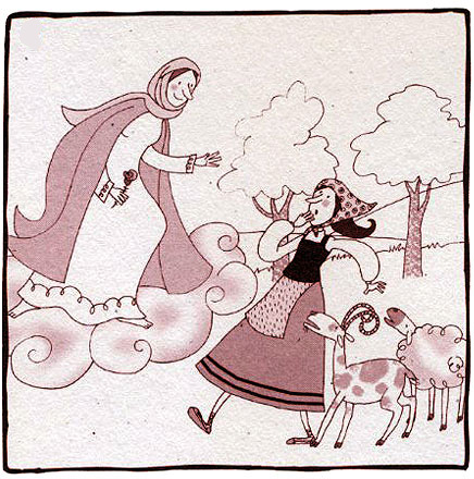 Девушка пришла в город и рассказала всем жителям и старейшинам о явлении Богородицы, но никто ей не поверил. Повесив голову, вся в слезах, пастушка вернулась на прежнее место и стала молиться. Тогда Дева Мария снова явилась девушке и, чтобы на этот раз бедняжке точно поверили, оставила на ее щеке особый знак — розу (по одной версии, святая просто поцеловала девушку, по другой — приложила к ее щеке руку, и тогда на этом месте появилась роза — та сама, которая ныне изображена на гербе Реуса). Теперь уже явление Богоматери было несомненно. Просьба святой была немедленно исполнена. Все жители Реуса, от мала до велика, обошли с большой свечой вдоль городской стены, и город был спасен от чумы.