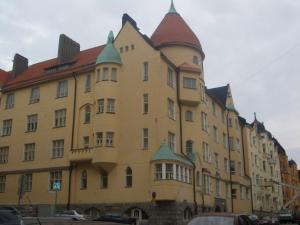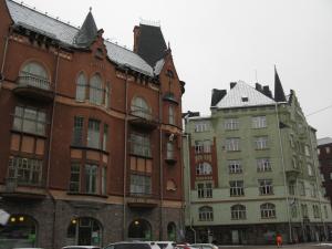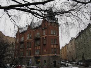 Обогнув Успенский собор слева, выходим на улицу Satamkatu. В доме под номером 11, на углу с Laivastokatu, находится светлый дом с эркером, построенный в 1911 году всё тем же Вальдемаром Аспелином.