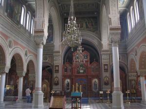Собор был совсем недавно отреставрирован и производит очень красочное, светлое впечатление. Снаружи это воздушное бело-голубое сооружение с яркими доминантами мозаичных икон и луковичными куполами.
