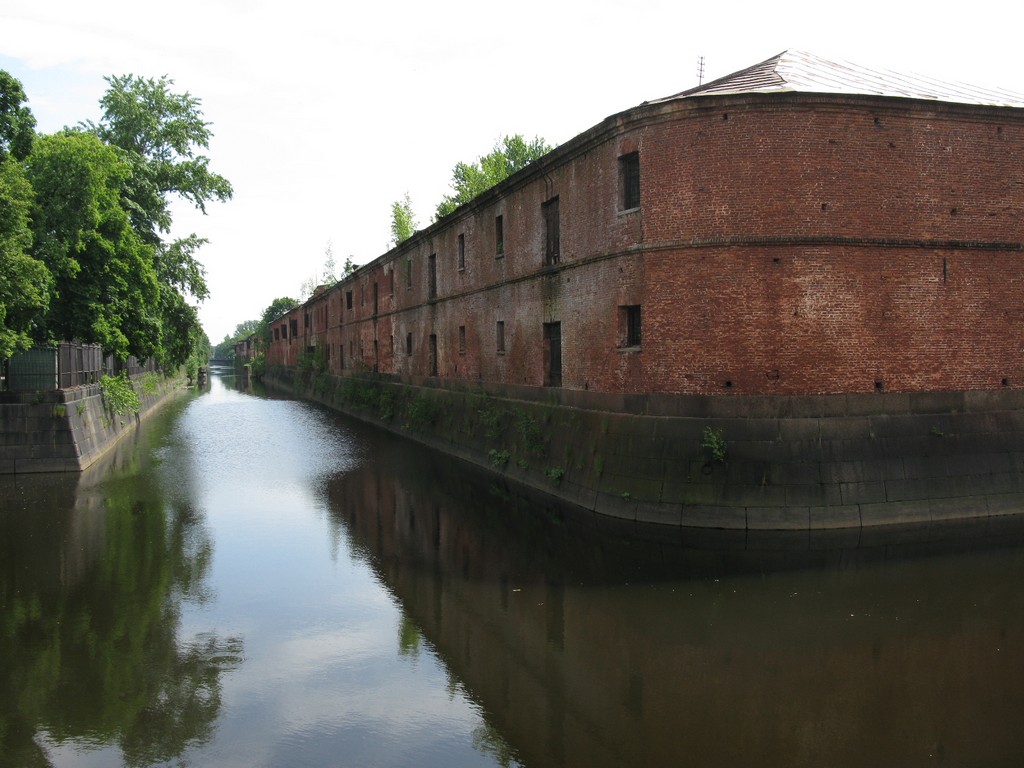 Обводный канал — одно из самых красивых и романтичных мест в Кронштадте. Вообще Обводный канал Кронштадта изначально был прорыт по периметру Адмиралтейства и предназначался для защиты строений от пожаров и постороннего проникновения. Интересно, что прямоугольник, очерченный Обводным каналом, составляет около пятой части всей территории исторического центра Кронштадта. В этом прямоугольнике, в частности, находится одна из самых известных исторических достопримечательностей Кронштадта — Петровский док, который мы увидим чуть позже. А пока что на северо-западном углу Обводного канала полюбуемся слегка обветшалыми, но очень живописными постройками, история которых связана с кронштадтским Адмиралтейством.