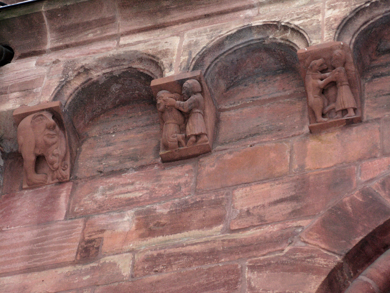 В алтарной части сохранились позднероманские капители колонн (1180/1200) со сценами из библейской истории, а также германских и античных мифов (источник фото [7]).