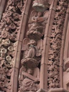 Еще выше с двух сторон от портала стоят фигуры Иоанна Крестителя и Иоанна Евангелиста, а над ними — два ангела с трубами, по звуку которых мертвые встают из могил и готовятся к Страшному суду. Бронзовые двери портала датируются 1892 годом.