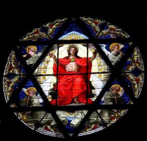 Отдельного упоминания заслуживают два круглых витражных окна в северном и южном рукавах трансепта. Одно из них, «окно Давида» с южной стороны, изображает Христа Судию в ярко-красном одеянии в окружении ангелов.