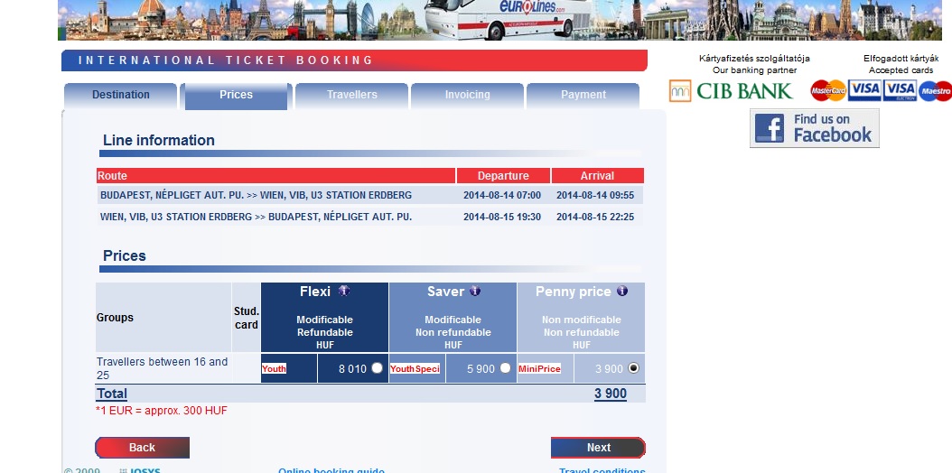 Тему поездки на автобусе из Будапешта в Вену мы обсуждали уже тут: viewtopic.php?f=25&t=44667&p=53423#p54007. Действительно, получается от 3900 форинтов туда и обратно. Хорошая цена  . Это я имею в виду для пассажиров от 26 лет. И да, эта фирма ( VOLÁNBUSZ, партнёр Eurolines) позволяет уехать утром из Будапешта в Вену и вечером в тот же день вернуться. Бронировать билеты на поезд онлайн на сайте венгерских железных дорог достаточно сложно, но можно, если очень хочется)). Самый экономичный тариф - 26 евро туда и обратно (во всяком случае для пассажиров старше 26 лет). Своего рода инструкция по бронированию есть тут: viewtopic.php?f=5&t=28&start=100#p67681