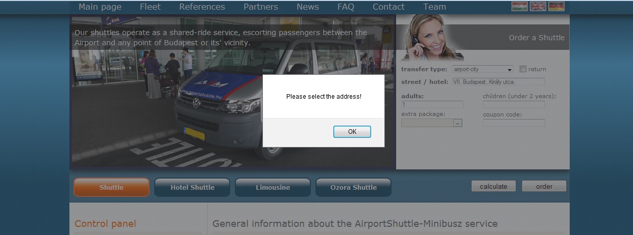 Кликаете по одному из вариантов, затем указываете номер дома, количество пассажиров и нажимаете "Calculate". Получаете цену трансфера: Самый бюджетный вариант - это, безусловно, общественный транспорт. На мой взгляд, вполне удобно и недорого, и не нужно заморачиваться с бронированием такси или миниавтобусов-шаттлов. Если всё же шаттлы Вам милее, то можете оформить заказ через сайт. Онлайн-бронирование оплачивается банковской картой. Также имеется телефон сервисного центра: (+36 1) 296-8555 (сотрудники обычно говорят по-английски). Электронная почта для заказа: foglalas@airportshuttle.hu К сожалению, как рассказал один из наших пользователей, иногда у сайта этих "шаттлов" бывают серьезные глюки: см. viewtopic.php?f=5&t=25&start=125#p59484 и viewtopic.php?f=5&t=25&p=60684#p60684. Но у большинства туристов - положительный опыт использования услуг данной фирмы: viewtopic.php?f=5&t=25&start=125#p59606 Re: Вопросы по транспорту в БудапештеПодскажите, из центра (Anker köz 1, 1061 - например) до вокзала Népliget возможно доехать на чем-то кроме такси, чтобы быть у вокзала в 3-40 утра?